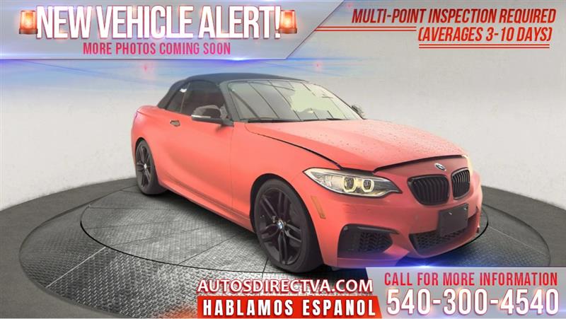**2016 BMW 2 SERIES CONVERTIBLE 228I M SPORT LINE RWD 2.0L 4 CYL TURBO GAS AUTOMATIC * NON-SMOKER * LEATHER HIGH VALUE OPTIONS * BACK-UP CAMERA * BLUETOOTH CONNECTION * CLIMATE CONTROL * HARD DISK DRIVE MEDIA STORAGE * HEATED FRONT SEAT * HEATED STEERING WHEEL * HID HEADLIGHTS * INTEGRATED TURN SIGNAL MIRRORS * KEYLESS START * LEATHER SEATS * MULTI-ZONE AIR CONDITIONING * NAVIGATION SYSTEM * POWER DRIVER SEAT * POWER PASSENGER SEAT * RAIN SENSING WIPERS * REAR PARKING AID * SATELLITE RADIO * SEAT MEMORY * SMART DEVICE INTEGRATION ***