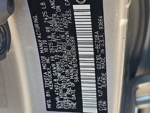 • VIN #: 58AGZ1B12MU086589