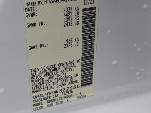 • VIN #: 1N4BL4FW5NN322586